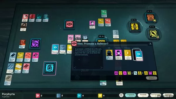 异教徒模拟器(Cultist Simulator)是由Weather Factory制作发行的一款模拟神秘秘教背景主题卡牌策略桌游。游戏采用roguelike式的叙事手法来讲述一个发生于1920年代的神秘故事。这款游戏充满了神秘的宗教神话色彩,在游戏中玩家会成为一名无形之术的学者,20世纪20年代以隐藏的神灵和秘密历史为主题的环境中不断的搜寻梦境,找到那些会扭曲心智的仪式,并且给将找到的物品合成,召唤灵体。你还可以向无辜者灌注你的思想,以这样的手段来作为新时代的先驱者来攫夺属于你的一席之地。异教徒模拟器最好玩的地方在于你需要不断的专研,去体会每一张卡牌之间连接起来的信息,这个复杂的游戏系统会让你沉迷的,你在游戏中的每一个决定都会决定你的生存,所以你需要务必的熟悉这个游戏系统,熟悉之后你就能够得心应手。来吧,用你自己的手段去了解这个神秘又迷信的时代,去探索这个世界的本质!