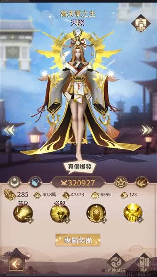 天照:神,必杀可对全体进行攻击,而且会依照身上正面状态提高伤害,10层以上伤害直接转直伤,而且每次行动都会帮自己加一个可以提高伤害的正面状态“极意”,可以有利于必杀转真伤,还有正面状态都不会驱散的优势,暖机后伤害非常可观的输出。专属装备可以一次叠2层“极意”,而且五层就让必杀转真伤,等级提高上去可以清除自身控和前2回合免控,以及追加目标血量上限伤害,非常强势。