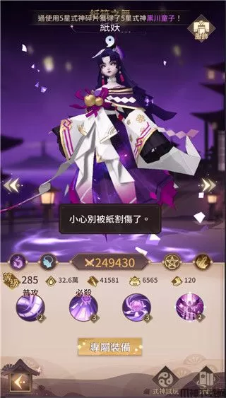 纸妖:幽都,攻击可附加持续伤害的中毒效果,而且她攻击中毒效果的敌人有额外增伤,而且她必杀相当特别,是攻击中毒最多的敌人,会产生毒扩散的效果,专武可以开场就放必杀,专武等级提高可以增加普攻上毒的机率,以及我方被攻击时有机率附加攻击者中毒效果,而且中毒达5层以上会出现易伤效果,算是透过叠毒持续伤害和追加易伤,长时间战斗很有利。