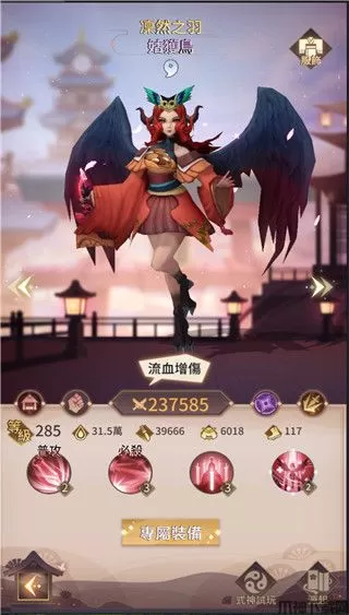 姑获鸟:部屋,可对目标多次打击且附加持续伤害的流血,她攻击身上有流血的敌人还能额外增伤,专武可以在目标流血达3层时追加提高暴击率,专武等级提高必杀附加流血机率到100%,而且叠满3层追加提高暴击伤害。