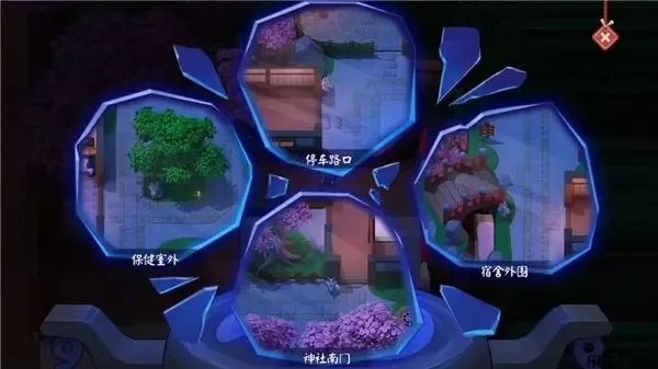 普通学员可以利用园内的设施监察地图动态,如神社大殿的八尺镜可以对停车路口、宿舍外围等特定区域进行监控。