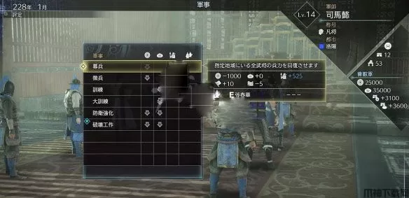 合作完成内政指令获得更佳的效果:在内政中,其他我方武将也会各自进行指令,而当与其他武将进行同一项指令时,将发动合作。
