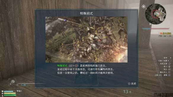 3、特殊招式:即人物固有技,R1+○发动。固有技发动中人物会处以无敌状态,而且都附带属性伤害。人物固有技都有冷却时间并且都是固定的招式不会因为武器改变而变化。