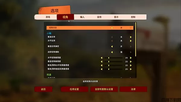 4、在视角选项当中,用户可以调整垂直反转、水平反转、水平视角敏感度等参数;