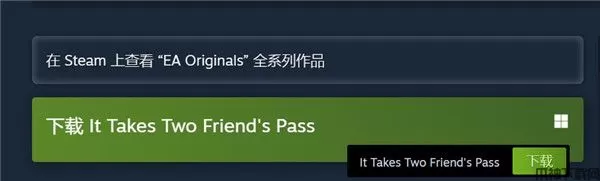只要在双人成行的steam界面下载——It Takes Two Friend's Pass即可。