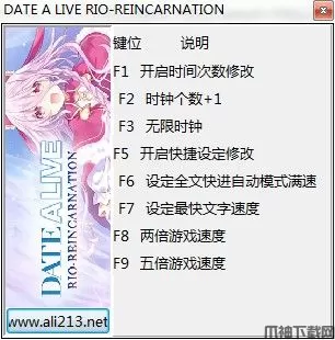 约会大作战凛绪轮回修改器是专为同名文字冒险游戏(约会大作战凛绪轮回)一款辅助修改软件,该软件界面简洁清爽,功能十分强大,能够为玩家提供时钟个数+1、无限时钟、设定全文快进自动模式满速、设定最快文字速度、两倍游戏速度和五倍游戏速度六项功能。