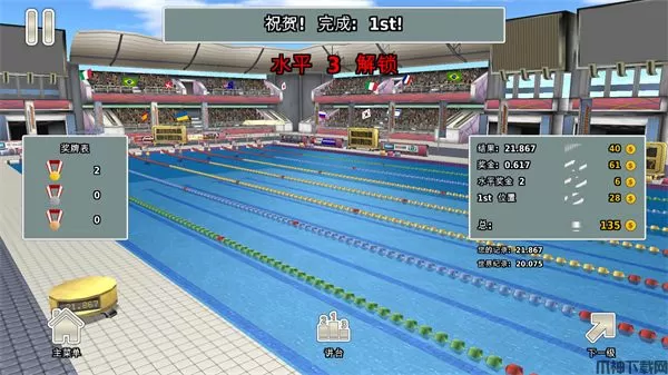 田径运动会3手游是一款体育竞技游戏。拥有很多体育项目,包括跳高、跳远、跑步、自行车、游泳、乒乓球等,玩家们可以参加自己感兴趣的运动。该游戏是模拟田径运动会比赛游戏,也是此系列游戏最新作品,延续了前两部游戏的基础玩法,采用了3D的画面设计,玩家在这里将灵活控制运动员的四肢,帮助它挑战跑步、跨栏、游泳、赛马等不同的比赛项目,玩起来超级热血,分数要达标,不然的话,要一直闯关。