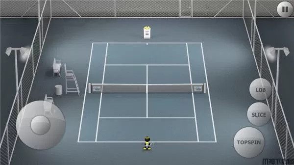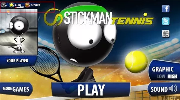 1、进入游戏开始界面,映入玩家眼帘的是一个有着黑大头的火柴人,拿着一个黑色的球拍,做出一副蓄势待发的得瑟表情,将玩家的胃口吊起来了有木有。在游戏界面停留几分钟后,系统还会自动为你演播一场场火柴人之间的网球较量,让玩家在游戏感到乏味的时候还可以观看近似真实的比赛现场。