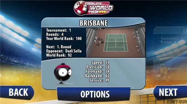 让你有种在全世界打巡回赛的赶脚(好吧,应该是我想太多)。游戏中对于对手方面也是可以选择的,你可以根据自己的实际能力去寻找简单、一般、高手三个难度的对手,当然,如果你连简单的对手都打不过的话,你就只能承认跟方块君一样,是个手残玩家了。此外,游戏中的比赛回合制度也是由你来决定的,有没有万事皆有我掌控的感觉