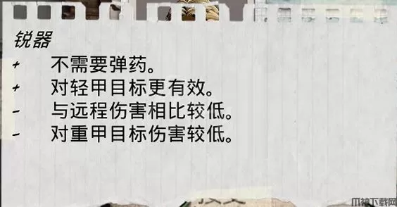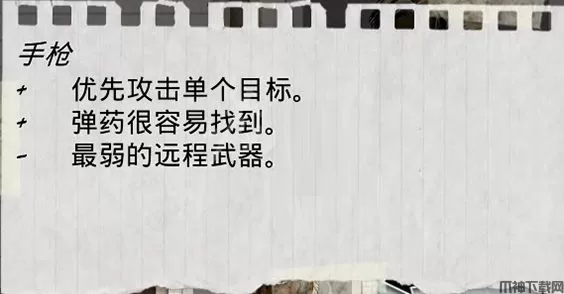 左下角为行动指示栏玩家可使用近战武器、远程武器和职业技能进行攻击。近战武器分为锐器和钝器两种;远程武器分为手枪、霰弹枪和步枪三种;职业技能分为猎手和技师两种。