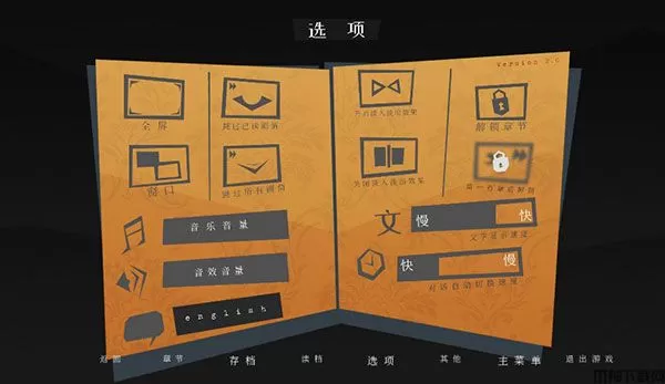 4、这里可设置音乐音量、文章显示速度、对话自动切换速度、全屏等
