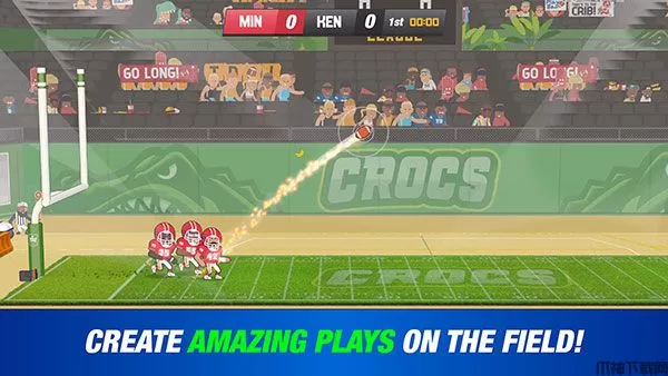 基情橄榄球2(TouchDowners2)是一款横版的体育对抗手游,基于物理原理的2D引擎开发,生动形象地还原了橄榄球运动的激烈程度。玩家们将在游戏中率领自己的队伍与其他俱乐部一较高下,竞争最后的联赛冠军。既然是队伍对抗赛,那么双方也都会派出3名球员进行参与。同样的,由于可以与队友并肩作战,所以在比赛过程中,玩家们可以施展出各种战术技巧,比如传球、围堵、过人等等。