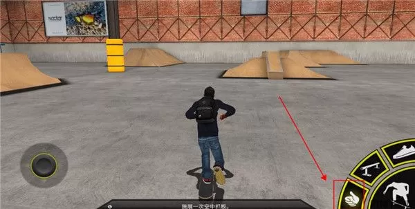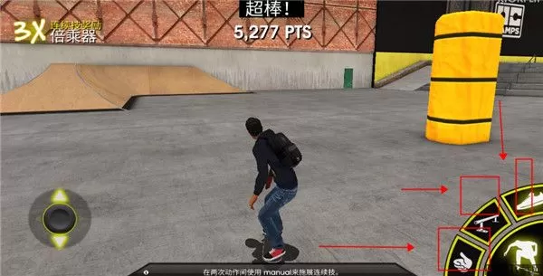 2、右边这个是抓板动作,按住不同方向和抓板可以组合成不同的抓板动作,也可以用于空中抓板,能够大幅度提升获得的分数