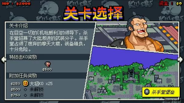 4、在战胜了4大恶人之后,可以选择要不要接受市长的1W块,接受进入结局B;不接受会迎来难度相当变态的市长关,里面的敌人相对之前的关卡血量攻击力几乎翻倍,而在打关底市长之前,还有4个BOSS一起出来干你的盛景——除了神棍特别烦人(会颠倒上下左右),倒是不难打,因为他们的伤害,包括关底的伤害,都远没有杂兵高。