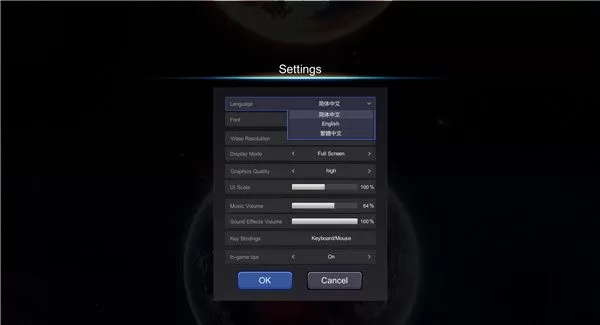 1、在设置选项中,选择简体中文;