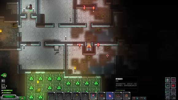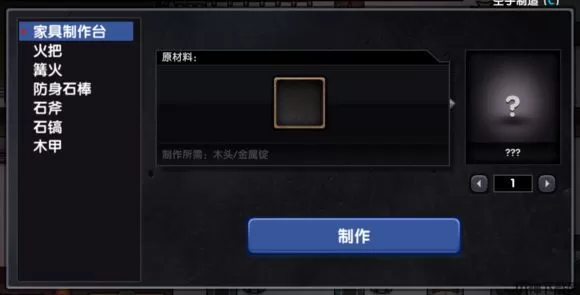 游戏开始,出生点是一个基地,左上角有个通道通往地下,前期可以裸下隧道,把隧道里面的箱子砸了,理由有一些火把和口粮。因为游戏尚在开发过程中,所以没有什么指引,新手进游戏之后注意两个按键——C和B。一个是空手制作,一个是背包,前者打开之后如下图所示,主要的制作工具包括斧头和镐子。前期不要去开山,砸地上的小石头凑出一把镐子再去开山。