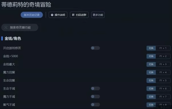 蒂德莉特的奇境冒险修改器是一款专为《蒂德莉特的奇境冒险》电脑游戏所打造的游戏辅助工具,玩家可以使用这款修改器修改众多属性,比如提供金钱最大、生命回复、氧气不减、火之能量无限等修改功能,帮助玩家大幅度提高游戏体验感。
