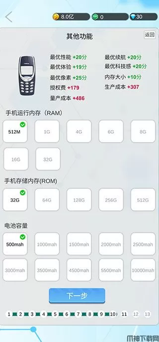 7、选择手机运行内存、存储以及电池容量大小,配置越高,成本越大哦。