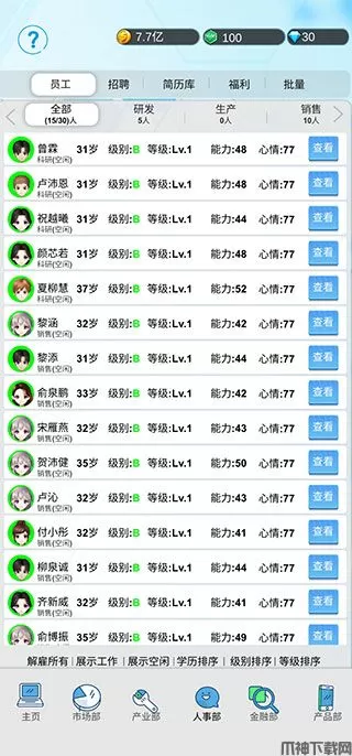 11、神秘部门:相当于氟金玩家用钞能力给自己降低成本,增加利润。以上设施,安排员工时,直接点击添加即可,自动安排。