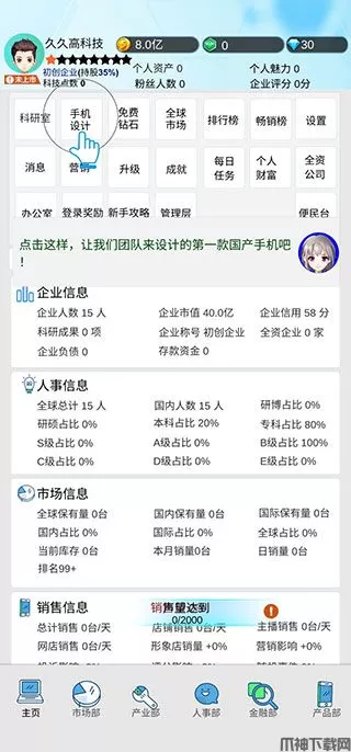 小米、华为等国产手机品牌相信大家一定十分的熟悉吧,国货当自强,那么大家想不想自己亲手创造出一款全新的国产手机品牌呢?国产手机帝国游戏可以为你实现这个愿望,它是最新推出的一款趣味十足的模拟经营手游。