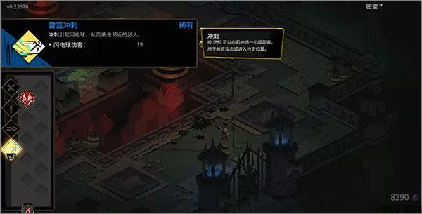 4、恩赐是完全随机生成的,主要影响玩家冲刺、攻击、特殊攻击和投掷武器,同时恩赐还有稀有度的差别,有普通、稀有、史诗和传说四个等级,每个神的侧重点都有所不同玩家可以根据武器特性和自己的风格来进行搭配,如果随到的能力都不喜欢就选择稀有度最高的,在击败boss后有机会将其卖掉
