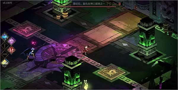Supergiant各类游戏内容丰富、大气磅礴以及游戏和故事叙述相结合的特有风格,在这款游戏中表现得淋漓尽致:壮观的手绘冥界环境和令人胆寒的原创配乐,营造冥界阴森恐怖的氛围,让人身临其境