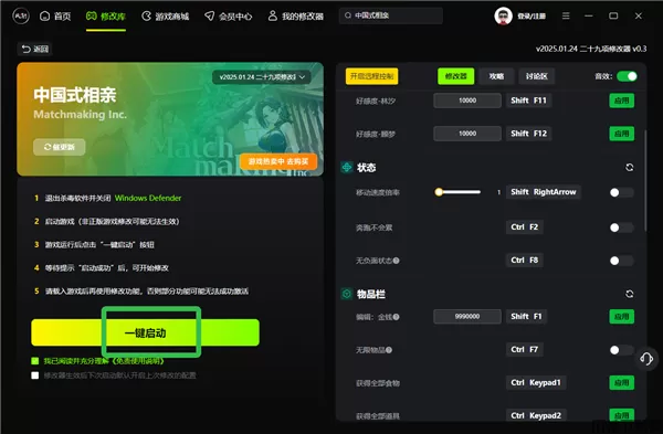 PS:中国式相亲修改器集成于风灵月影客户端,玩家需在客户端内启动中国式相亲修改器。