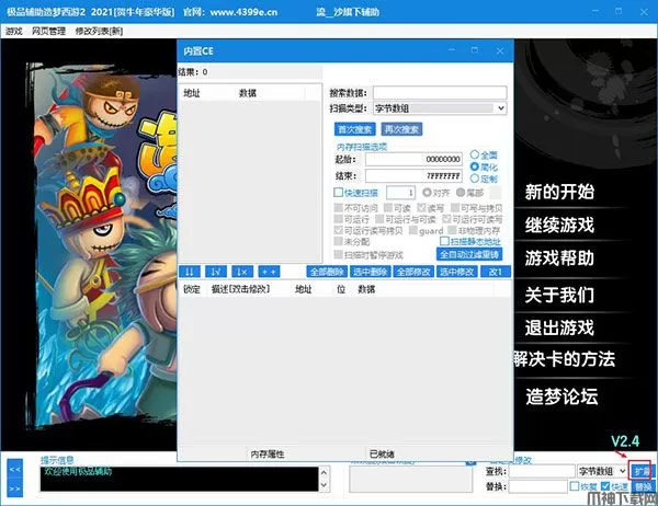 5、另外,点击右下角的扩展,可看到还内置了ce修改器让你自由操作,随意修改游戏数据;
