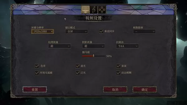 6、在视频设置中,玩家可根据自己的电脑性能来调节诸多设置,比如:分辨率,纹理质量、色差等;