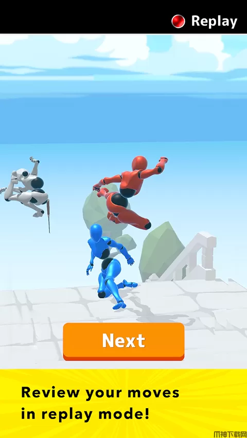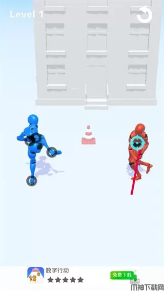 1、操控红蓝小人进行比赛,你需要灵活地躲避敌人的攻击。