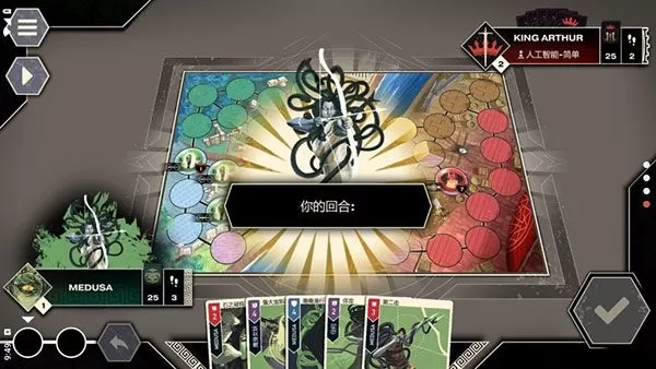 无双对决数字版手游(Unmatched)是改编自同名Steam游戏移植而来的一款策略桌游模拟游戏。在这款游戏中,玩家们需要选择两个(或更多)对手指挥着神话、历史或小说中的角色,为时代而战!你有没有想过谁会赢,亚瑟王(与助手梅林)还是仙境中挥舞着剑的爱丽丝?辛巴达和他值得信赖的搬运工乘客将如何对抗美杜莎和三个女妖?找到真相的唯一方法是快速玩一盘Unmatched战斗游戏!因此每个玩家需要命令他们的英雄和伙伴,使用一副独特的纸牌,在战场上击败他们的对手。但需要重要的是,每个英雄都有独特的牌组和能力,爱丽丝可变大变小,亚瑟王可以弃一张牌来增强其攻击,辛巴达随着航行次数的增加会变得越来越强大,美杜莎只需一瞥就能毁了你。