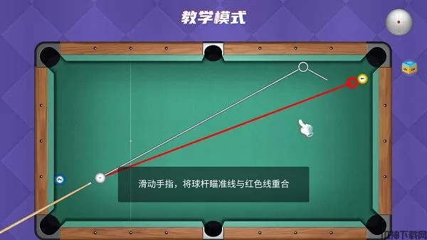 2、滑动手指,将球杆瞄准线与红色线重合。