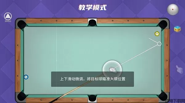 3、上下滑动微调,将目标球瞄准入袋位置。