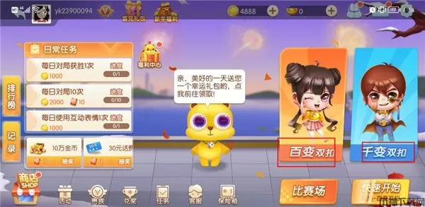 1、当我们进入游戏中的主界面之后可以看到双扣一种有两种玩法,分别是百变双扣与火拼双扣,这两种可以随意切换。