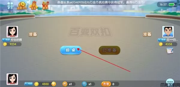 4、进入游戏之后,如果人满了之后是自动开始游戏的,如果没有开始的话,我们也是可以点击桌面上面的换桌的。