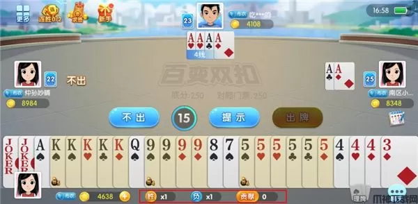 6、在牌桌上是有底分的,一般随着我们的炸弹的越多,底分的数值就会越来越高,底分是与我们获胜或者失败时候扣除金币有关系的。