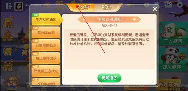 9、同时在游戏的右上角是有公告的,公告会显示出系统的内容的,其中就有反作弊,这个需要大家注意,如果作弊被举报并且被核实的话,是要扣除金币并且封号的。