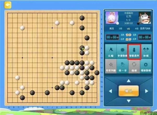 2、软件还有智能裁判,裁判能像老师一样公平、公正,24小时随时守候在小朋友的对局环境中,再也不怕对手耍赖和填子了。