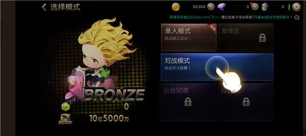 2、选择游戏模式,有单人模式、对战模式、友谊战等,选择一种模式进入游戏