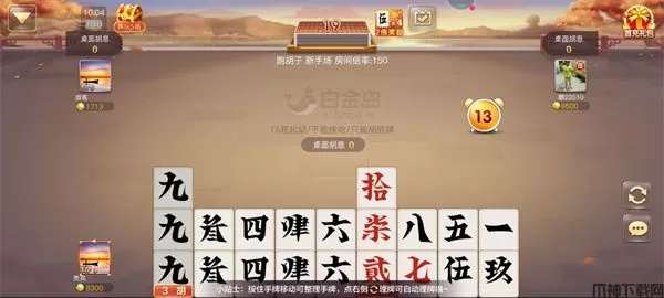 5、游戏开始后,玩家按住手牌移动可以整理手牌,点击右侧的循环按键可以自动理牌;