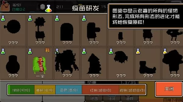 7、图鉴中显示老婆的所有的怪物形态,完成所有形态的进化才能将她恢复原,除此之外,游戏中还有很多玩法等着玩家们自行下载体验。