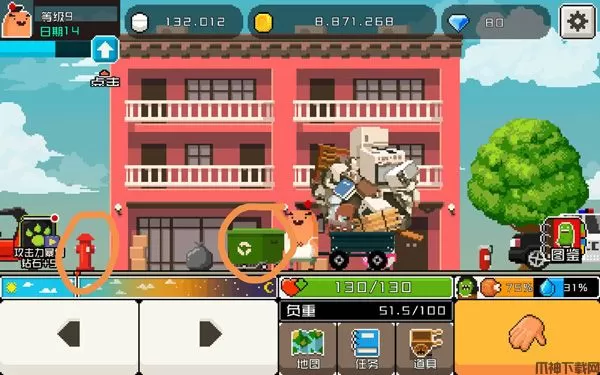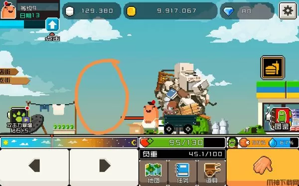 3、打碎街上的一切,收集材料,升级你的研发机器。