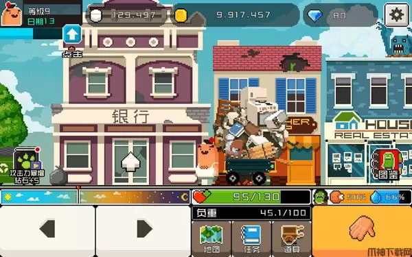 进银行可以投资一部分钱等着利滚利就行了(点击一次最多999.999,可以多点几次),苹果和银行弄完了,个人觉得嗑药小哥是个长期快速挣钱的方法(这个貌似早上好!僵尸也适用),