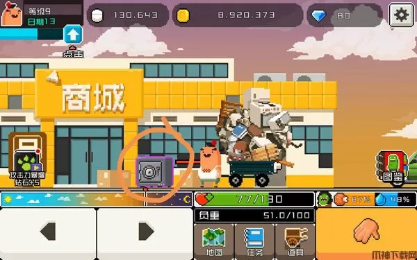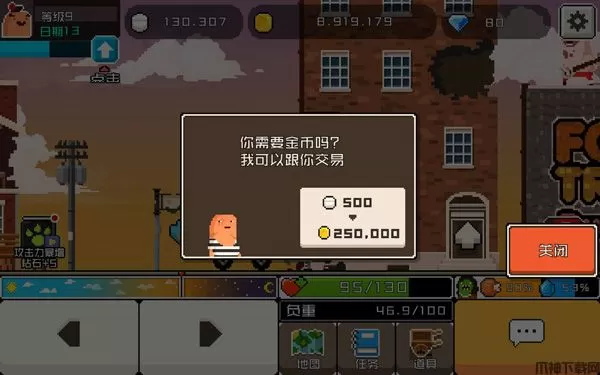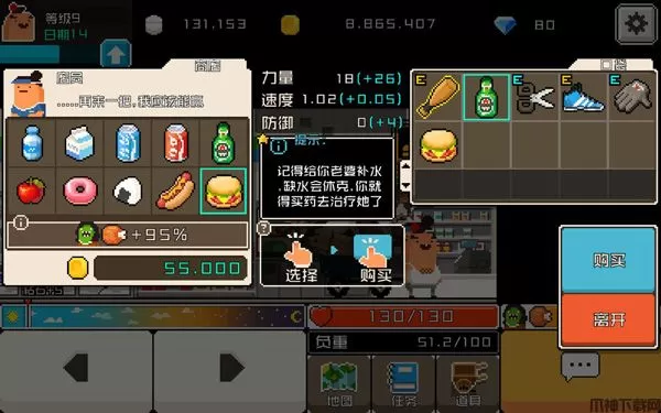 6、人物升级,购买武器及道具进行强化。