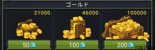 ※ 兑换金币所需的宝石数量会随着等级的提升而减少。
