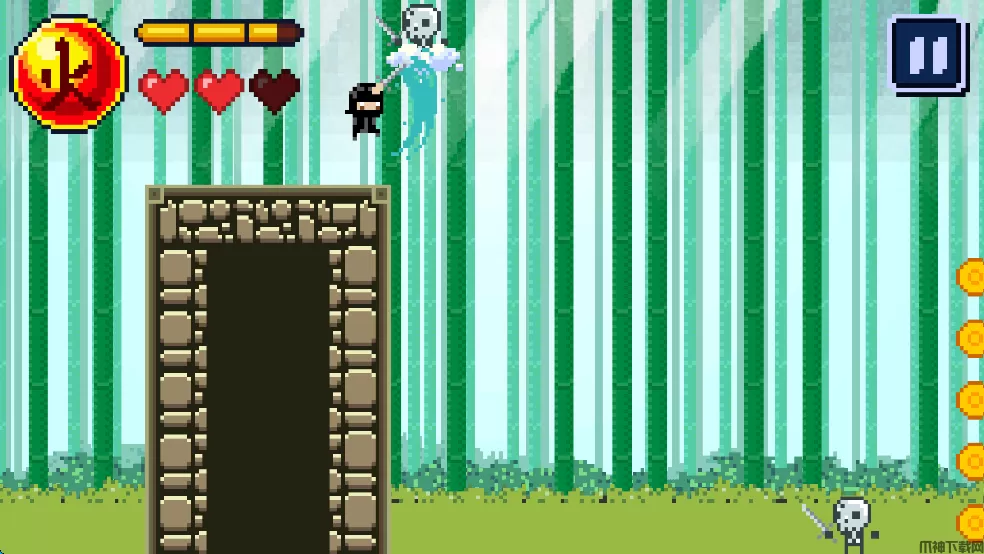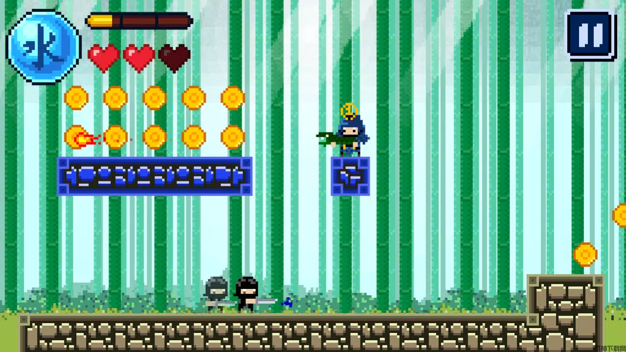 像素忍者冒险是一款经典的横版像素闯关类游戏,在游戏中你需要操作着你的角色一路过关闯关消灭路上的小怪,击败他们还会掉落宝物,注意躲避掉一些阴险的陷阱。