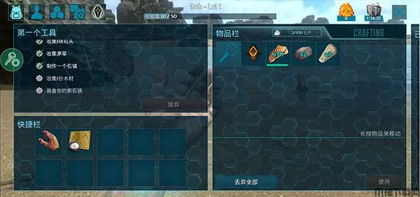 3、收集许多的物品与材料,用来制作交通工具以及武器与野兽进行战斗。