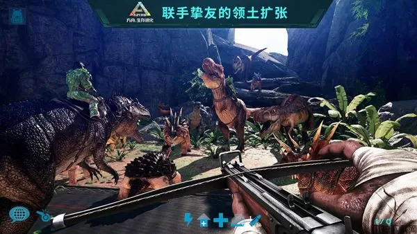 方舟生存进化手游是一款以恐龙为主题的开放世界生存类手游,故事讲述的是一群人类为了生存,不得不在这个开放的古老世界中探索,而在这个古老的世界中也生存这众多的远古生物,比如恐龙、长毛象、灭绝鲨鱼等等,因此要想在这个大环境中生存下来就必须狩猎、收获、研究技术,甚至还要根据动态的天气变化来建造属于你们的庇护所,以此才能生存下去。另外,方舟生存进化手游的玩法十分的丰富,在这里你可以使用技巧来驯服和骑乘恐龙和其他原始生物,也可以收集资源来建立自己的部落,更可以制作自己的冷武器枪支,总之,玩法极为的丰富,而且还极具RPG元素,因为方舟生存进化手游支持你与其他玩家共同合作、竞争,让你体验一个与众不同的开放性世界。