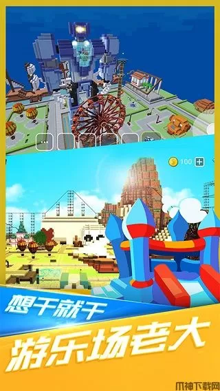 小小世界大爆破是一款像素风沙盒建造类游戏,游戏中你经营这一座游乐园,你需要利用各种方块来建设更多设施以扩张你的游乐园,建设更长更刺激的过山车车道,使用蓝图建造美丽的建筑,开始探索游乐园世界!在世界上最好的过山车公园开始探索。