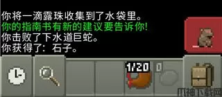 左上方框中为头像,头像框右下数字为等级,右方长条条是血条,头像黄色闪烁提示有未使用的天赋点。头像呈红色闪烁提示血量低该考虑回血了(露珠、回春草、治疗药剂、催眠卷轴)。点击头像可查看当前属性、状态,选择天赋。状态也会在血条下面显示图标,包括各种增益、负面状态及剩余回合数。
